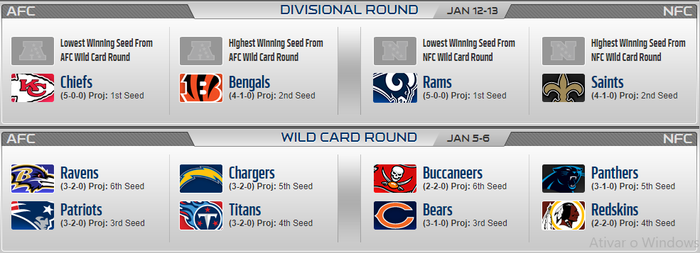 1. Se a temporada da NFL acabasse hoje, essa seria a playoff picture, a qual não faz absolutamente nenhum sentido: