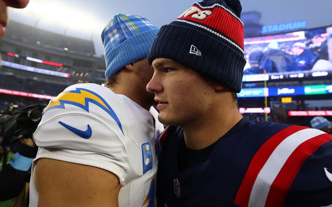 Cortamos para mais de 20 anos depois. No próximo domingo, Justin Herbert e Drake Maye escreverão mais um capítulo desta saga. O duelo dos jovens quarterbacks é a grande manchete, mas existem outros fatores também. Jim Harbaugh versus Mike Vrabel, por exemplo: ambos treinadores veteranos e ex-jogadores de seus respectivos times.