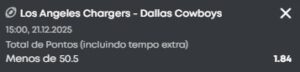 Menos de 50.5 pontos em Cowboys e Chargers