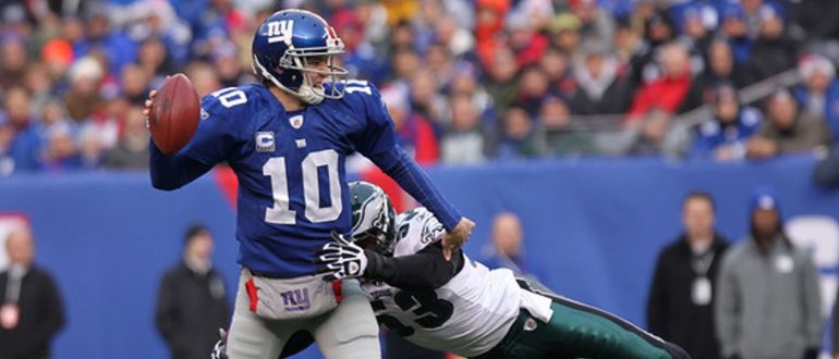 Eli Manning, desde 2009, não tem campanhas boas contra o Philadelphia Eagles. São 4 vitórias e 12 derrotas contra a equipe de Philadelphia – com 58% de aproveitamento nos passes. Em comparação, contra o restante da NFC East (Dallas/Washington), Eli tem 20 vitórias e 13 derrotas no currículo.