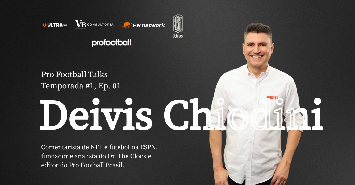 No primeiro episódio, “recebemos” Deivis Chiodini, comentarista da ESPN, fundador do On The Clock e editor do Pro Football.